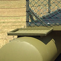 We replace the two small trays on the inside of the blind with a composite deck board with a lip that runs the full length of the blind. This will give you more space to set ammo boxes, coffee cups, cell phones, etc. It also has 4 notches cut out to rest your guns against.